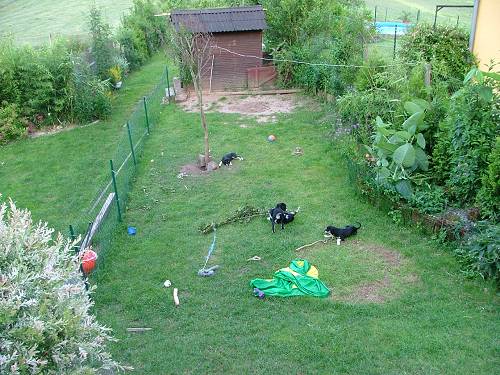 haben die Welpen ihren Auslauf mit direktem Zugang zum Welpenzimmer im Haus | Here