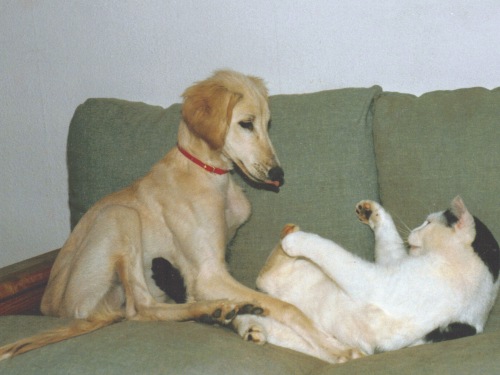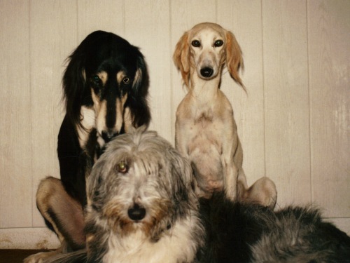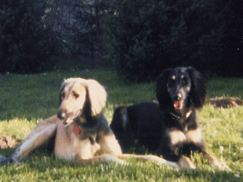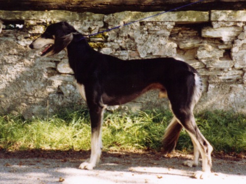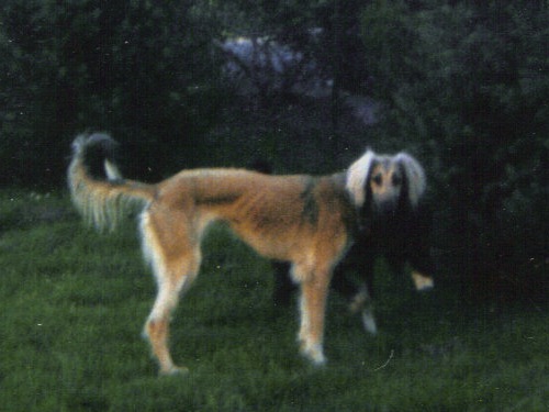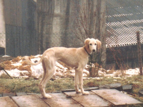 In den 80igern.... bekam ich meinen ersten Windhund - Kira. Sie war eine Kreuzung aus Afghane und Saluki (Rashid von Masovia), mit einem typ. Afghanen-Charakter. Kein Zaun und keine Mauer konnte sie davon abhalten, auf die Jagd zu gehen. Leider wurde sie nur 1,2 Jahre alt. Ein Jäger hatte sie erschossen, was ich aber erst Jahre danach erfahren hatte. Zu Kira hatte ich noch einen Bearded-Collie-Mix - Annic. Nachdem Kira nicht mehr lebte, kaufte ich kurz vor Weihnachten 1986 Jana (Arjuna od Romanske). Jana war in einer Tageszeitung inseriert. Ich wollte ja nur mal schauen gehen, aber als ich das armselige kleine, abgemagerte Tier in dem Hundeladen sah, nahm ich es natürlich sofort mit. Pedigree und Abstammung waren mir damals noch nicht wichtig. Auch sagten mir DWZRV und VDH sehr wenig. Wenn man nun aber mal einen Hund mit Pedigree hat, befasst man sich dann auch damit. Nun musste ich natürlich herausfinden wo Jana herkam. Nun, ein Neufundländer- und Pudelzüchter bestellte sich einen Saluki aus dem berüchtigten Zwinger/Hundehandel Struck im Raum Passau, der alle möglichen Rassen auf Bestellung aus der Tschechei herbeischaffte. Der Neufundländerzüchter hatte jedoch zum Glück schnell bemerkt, dass ein Saluki etwas Anderes ist und wollte ihn nicht mehr haben. So kam meine kleine Jana zu mir. Ein zartes, liebevolles Hündchen mit absolut eigenem Kopf. So fing das Saluki-Fieber an. Durch den Besuch von Ausstellungen und den Kontakt zu Züchtern, erwarb ich 1987 von Frau Göbel-Fritz, den 2-jährigen Rüden Min Ma Sha Xanthos. Mit Xanthos und Jana bin ich auf viele Ausstellungen gegangen. Beide hatten auch die Rennlizenz und wir besuchten viele Veranstaltungen im Raum. Xanthos war Landesrennsieger/Badenkurpfalz 1987 Xanthos war ein guter und sicherer Renner auf der Bahn. Jana hingegen rannte nur im Training. Sobald ich sie auf ein offizielles Rennen gemeldet habe, blieb sie meistens stehen, obwohl sie mit den gleichen Hunden lief, wie in Trainings zuvor. Sie hatte CHARAKTER !!!