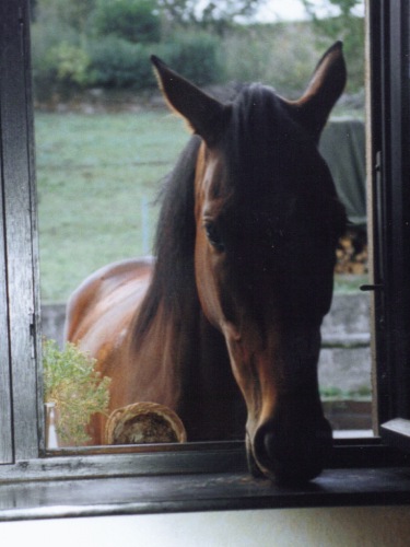 bekam ich mit 3 Jahren als "rohes Pferd. Sie war eine Vollblutstute, für